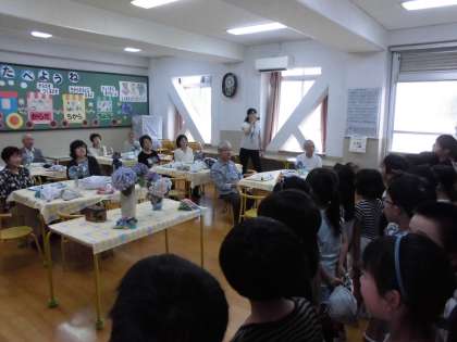 3年生が地域の方々と一緒に給食をいただきます。最初に歓迎の歌を2クラスで披露しました。元気いっぱい素敵な歌声を聴いていただきました。