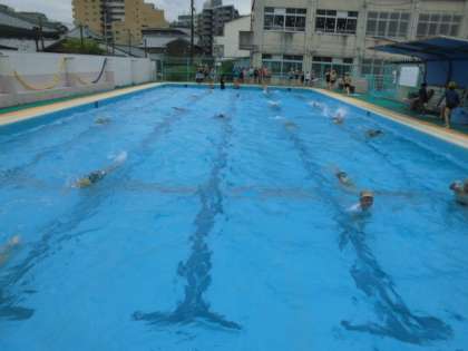 水泳大会は本年度も行いませんのでいつでも学習の様子を参観しに来てください。天候の加減でできない時もありますので電話で確認の上来ていただけたらありがたいです。