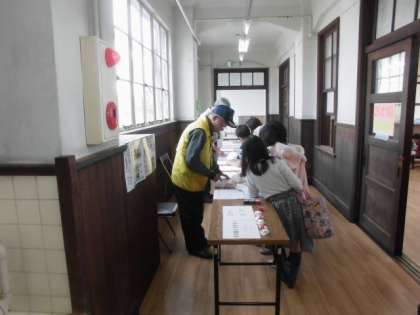 中京警察署からは自転車の安全な乗り方の練習ができるシュミレーター,自主防災会からは「その時どうするクイズ」消防署・消防分団からは消防自動車などたくさん経験させてもらいました。