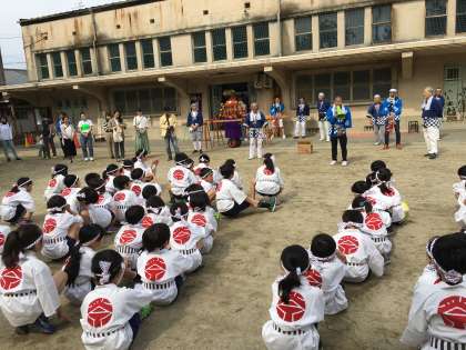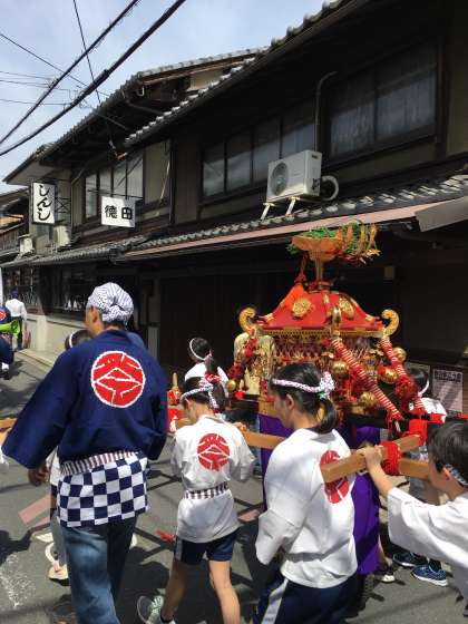 10連休の真ん中ですが,地域行事で元気な子どもの姿を見ることができました。地域保護者の皆様のご協力で神泉苑の子ども神輿が地域を練り歩きました。神泉苑でお祓いをしてもらっている時には神妙な顔で静かに聞いていました。