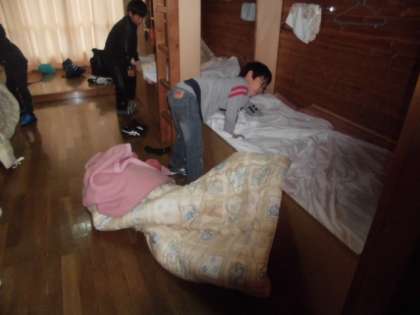 朝は6時より少し前に目覚めて,布団を片づけたり,身支度をしたり声をかけなくてもしっかりできていました。昨日の晩御飯が早いのでおなかが減っています。夜は消灯してすぐに静かになり,朝までぐっすり寝ていたようです。
