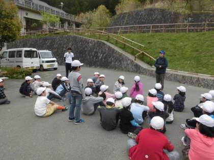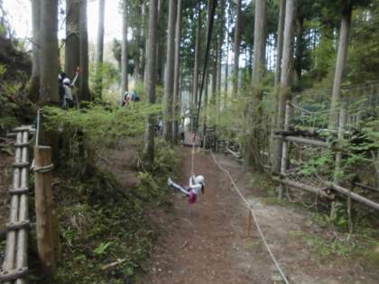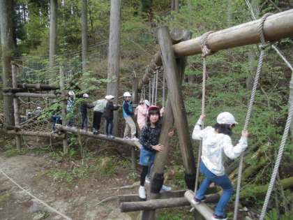 みんなが楽しみにしていたアスレチックの時間です。最初に今日のめあてとアスレチックをする時に気を付けることをみんなで確認しました。山階南小学校のみなさんが山登りにでかけているので洛中小41人で思い切り遊びました。
