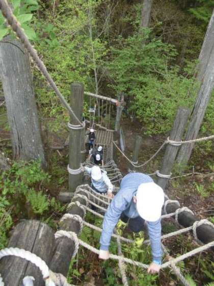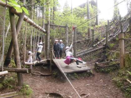 アスレチックは4年生以上でないと使用できません。この間まで3年生だったみんなにはちょっと難しそうなものもありましたが「竹輪の手」と「3点支持」を守って果敢に挑戦していました。今日のめあては「みんな仲良く楽しもう」です。譲り合ったり助け合ったりできるよう午後の活動も頑張ってほしいです。