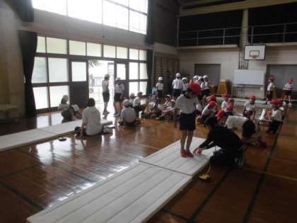 今年度から体育の服を貸し出さないことにしています。自分で用意をし,忘れた時には見学をしながら次は忘れないようしっかり自覚してほしいためです。また,借りてすぐに返さなかったり,早い者勝ちになってしまって忘れた人全員に貸せなかった事も何度もあったりしたので,「自分の事は自分で責任を取れる」という事を子ども達にもお話しながら忘れ物のないように指導していきたいと思っています。児童の実態に合わせこっそり点検するなど家庭でもサポートをお願いします。