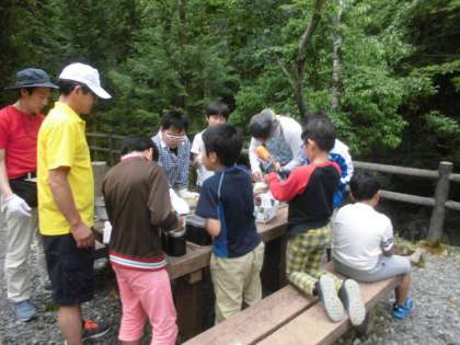 6月9日日曜日に少年補導から亀岡の七谷川につれていってもらいました。グループごとにたくさんの大人の方がついてくださって楽しい一日を過ごしました。