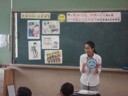 本日(6/11)の3時間目に,2年生と4年生で「非行防止教室」の学習がありました。中京警察署のスクールサポーターの方3名に学校来ていただき,子どもたちが学習をしました。