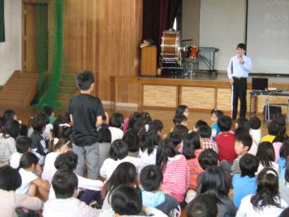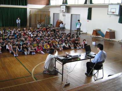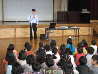 3校時の人権集会では,大阪で高校の先生をされている全盲の方のお話を聞きました。テレビで紹介された学校での様子のニュース映像や,音が出るコンピュータを使って文字を書かれることなど,実際にいろんな工夫をすることで,できないことを可能にする前向きな生き方に触れることができました。