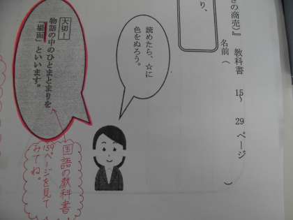 「きつつきの商売」では初めて「場面」という言葉が出てきます。