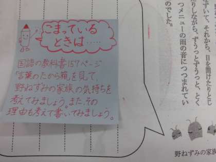 音をきいて動物たちの気持ちを考えるという課題があります。