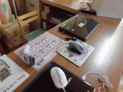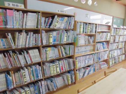 ほんが たくさんあります。ばしょによって ほんの なかまわけが してあります。みんなの すきなえほんも たくさん あります。 かりるときには ばあこおどを ぴっと とおしてかります。