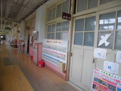 1かいの ぴろてぃで ひだりをみると ながい ろうかが あります。ぴろてぃの すぐそばにあるへやは「ほけんしつ」です。