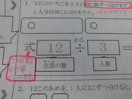今回は「わり算」の問題のヒントをお伝えします。