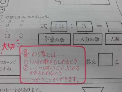 「わり算」が一体どういうものなのか,分かってきましたか?