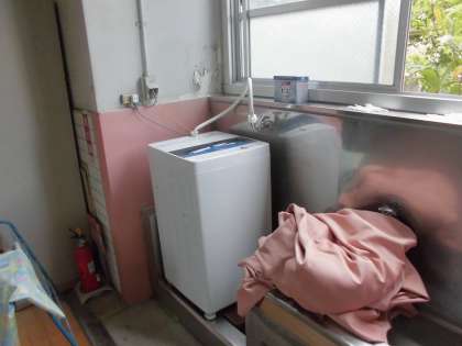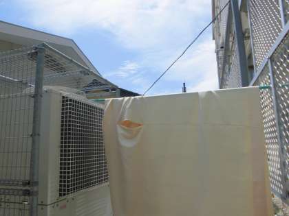 お天気がいい日には教室のカーテンを洗濯しています。日に焼けたり,子どもたちの手あかがついたりしているのが気になっていたのです。