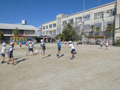 明日は体育の参観授業です。3年生はエンドボールの試合を見てもらいます。バスケットボール型の運動でチームワークが問われます。パスのもらいやすい位置に素早く走るなどいろいろ考えてプレーしていました。