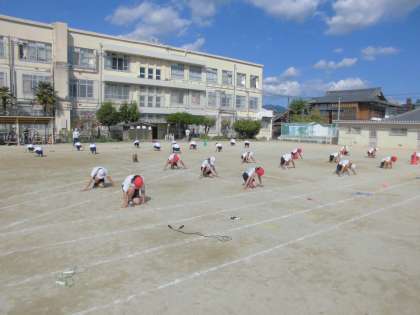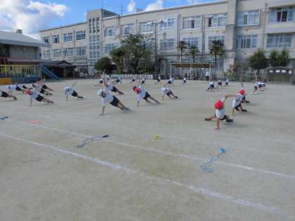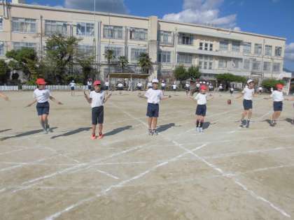 5年生は体ほぐしの運動と縄跳びを合わせた体操をみていただきます。自分たちで考えたポーズがかっこいいです。自信満々で遅る子どもたちをぜひお楽しみに。