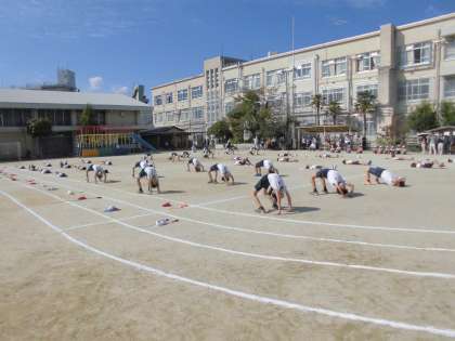 組体操の一人技の組み合わせやダンスを入れながら音楽に合わせて縄跳びをしました。組体操では指先までしっかり伸ばしたり,しなやかな動きを丁寧に行ったりして真剣さが伝わってきました。ダンスもみんな笑顔で楽しそうに踊っていました。