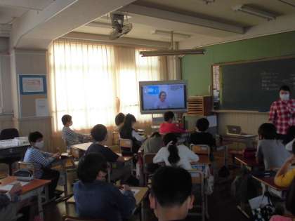 生き方探求館作成ビデオを見て「働く人へのインタビュー」からいろいろなことを学びました。「 どんなことを大切にしながら働いていますか」「何のために働いていますか 」「働くために必要な力は何ですか」などしっかり聞き取りながらメモを取っていました。