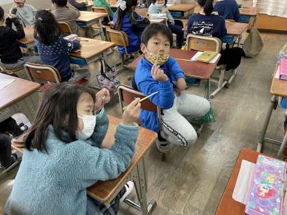 あらかじめ正しい持ち方を確認してみると,少しだけ間違えていたことに気づいた子や練習していると難しくかんじる子もいました。