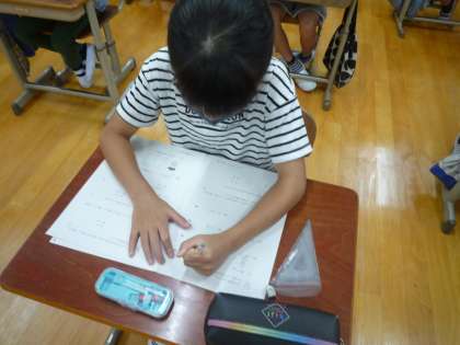 1学期から予告してきたプレジョイの算数テストを行いました。限られた時間の中ですべての問題に取り組むことを目標にテストをしました。鉛筆がスラスラ動いている子が多かったように思います。明日は国語のテストです。最終確認をして,今日はいつもより早めに寝て,明日に備えてほしいです。
