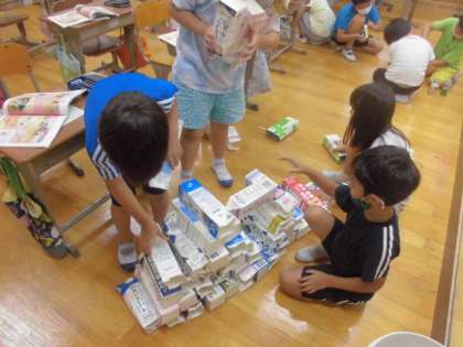 今日は,それぞれの素材ごとにどんな特徴があるのかを遊んで確かめました。