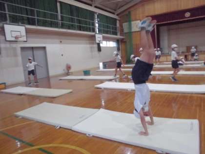 ひざが離れないように気をつけたり,かかとをつけて着地したりと,自分にできる技を正確に練習しています。そしてできなかった技にチャレンジし,できる技を増やしたら,いくつかの技を連続して取り組みます。
