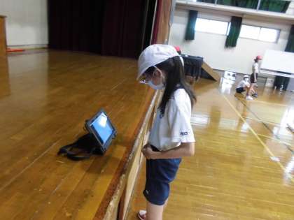 体育科のマット運動では,連続技と組み合わせ技にチャレンジしています。タブレットを使って動画で動きの確認をしながら,いろいろな技に取り組んでいます。自分のめあてにむかって,一生懸命に取り組む姿が見られます。