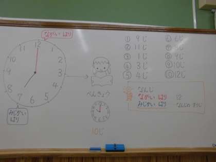 1年生は算数科で「なんじ なんじはん」の学習に取り組んでいます。