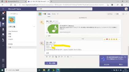 2年1組のTeams(チームス)にZoomのIDとパスコードをのせておきました。