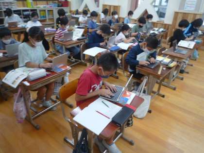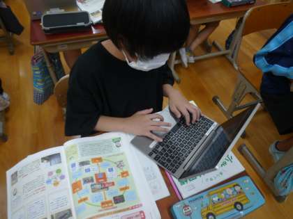 自然災害について学習をしています。災害時にだれがどのように対応しているのか,資料を読みとって,ロイロノートに整理していきました。災害が起きた時には京都市が災害対策本部を開き,様々な機関に指示を出したり,市民に避難を呼びかけていることがわかりました。今後もパソコンを活用した授業を進めていきます。