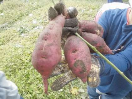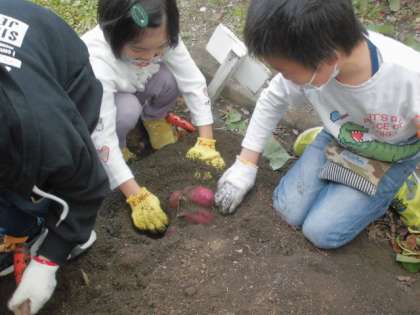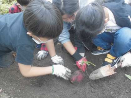 食育指導員の方にも丁寧に掘り方,つるの取り方を教えていただき,楽しくいもほりができました。