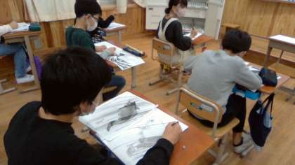 役者,花や風景画など自分で興味惹かれた作品を,試しに一度描いてみました。描くために,じっくり見ていました。