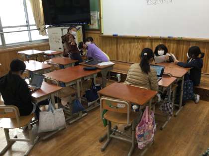 昼休みの過ごし方,子ども達それぞれです。30周年記念式典に向けて,原稿の読み合わせをしている子。委員会の仕事をしている子。6時間目のクラブに向けて,準備で体育倉庫や学習室を行ったり来たりしている子。運動場で,おにごっこしている子。1年生と一緒に遊んでいる子。などなど,こちらが少しウロウロするだけでは全員すぐには見つかりません。それぞれが,いろいろな過ごし方で楽しんでいるのが面白いです。