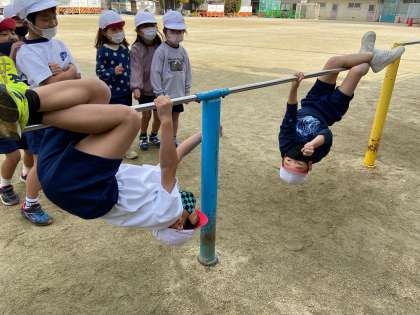 今日は子どもたちにとって初めての「てつぼうあそび」の学習でした。
