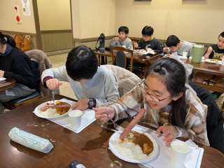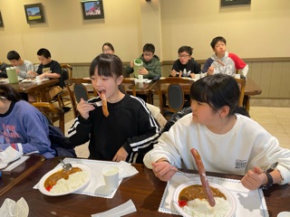 お昼ご飯は,自家製ソーセージカレーです。