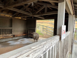羊のおひるごはんのタイミングだったのか,小屋に何匹か戻っていました。