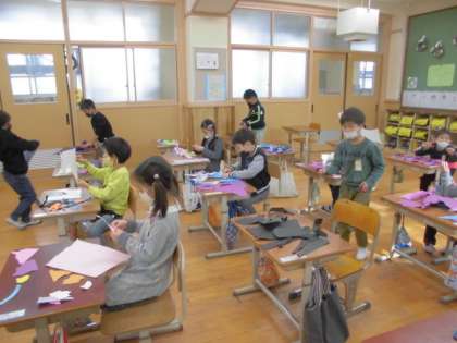 今日の図画工作科では,「やぶいた かたちから うまれたよ」の学習に取り組みました。