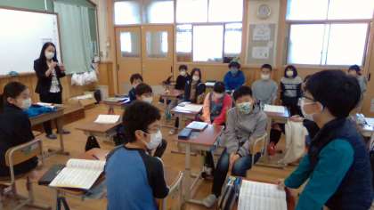 今日は,合奏・合唱の部活動に熱心に取り組む学生の動画を観て,感想を伝え合っていました。「今まで歌詞を一生懸命覚えるとしか考えていなかった。」など,想いを込めて歌っている姿に心動かされている様子でした。これから,パワーアップする子ども達の素敵な歌声を聴けるのが楽しみです♪