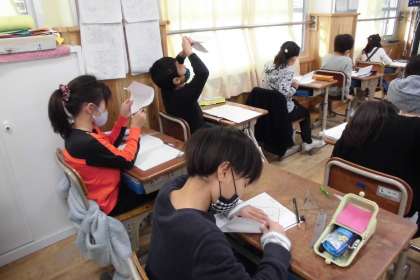子どもたちは,「等しくないよ,だって先生の三角定規の方が大きいから。」と見通しを立てていましたが,実は角の大きさは同じことに気づき,驚いていました。
