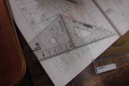 三角形の学習の中で,今日は子どもたちが持っている三角定規の角の大きさについて調べました。