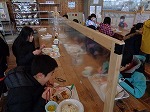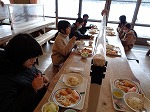午後からの「歩くスキー」に備えて,食堂でお昼ご飯を食べました。
