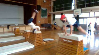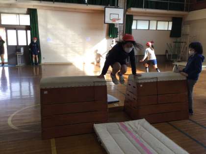 今日で,跳び箱の学習も5時間目。今日も新たに技をできた児童,前回より技が完成に向かいつつある児童の姿が見られました。それぞれ,新たな挑戦,頑張っています。明日が,跳び箱学習最終です。