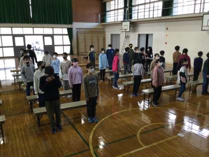 卒業式練習をしています。入場や卒業証書授与の時の動きを確認しました。