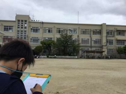 5年生は天気の変化について調べるため,運動場で雲の観察をしました。