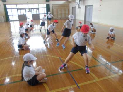体力テストの練習をしています。2年生は,「50メートル走」「反復横跳び」「立ち幅跳び」「ソフトボール投げ」の4種目に挑戦します。「反復横跳び」には初めて取り組むので,なかなかリズムがつかめませんでしたが,練習を重ねるとテンポよくできるようになりました。来週は,スポーツテスト本番です。どんな記録がでるのか楽しみです。