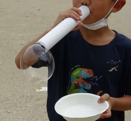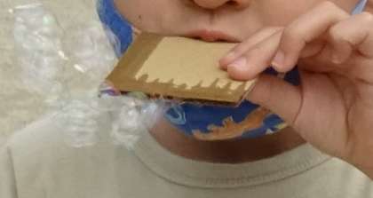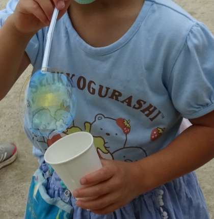 段ボール・サランラップの芯・ストロー等,シャボン玉がよくとんで楽しかったです。