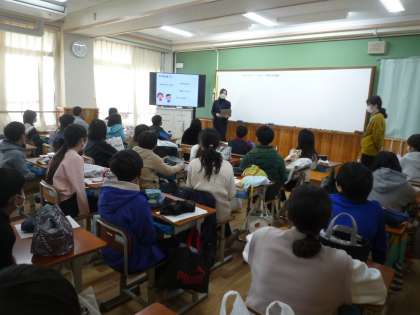 中学校給食体験がありました。平野先生と中学校の先生が中学校給食の詳しい説明をしていただきました。小学校の給食との違いをいろいろ学ぶことができました。授業の後半で家から持ってきた弁当箱に詰め替える体験をしました。色どりを考えながら、お弁当に綺麗につめることができました。