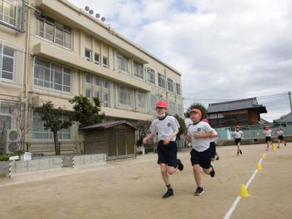 走るのが苦手な子どもたちも、同じペースで走ることを意識して取り組んでいました。