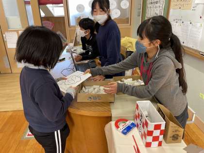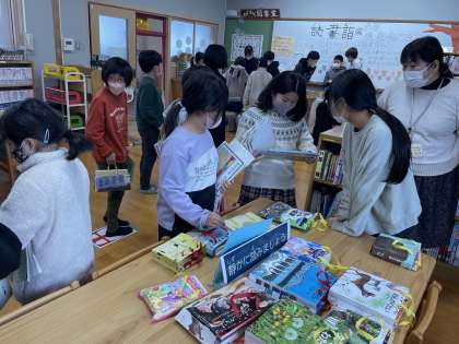 図書室のイベントがスタートしました。中間休みに行くと、すでに図書室には列ができていました。今日は2・3・4年生を中心に、おみくじをひいたり、福袋をもらったりする姿がみられました。イベントは来週まで続きます