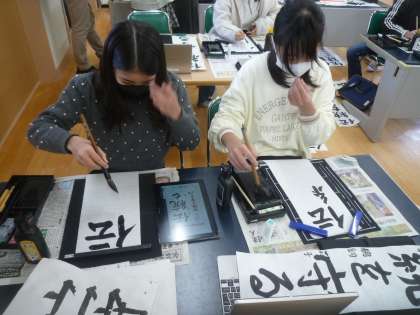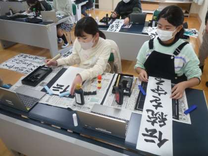 書写の学習で書き初めを行いました。文字の大きさや組み立て方、文字の中心に気をつけて書きました。気持ちを入れて、集中して一文字ずつ書いていました。